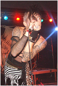 Always the colourful misfits in the early 80s anarcho-punk pack, Rubella Ballet bucked the trend of monochrome clothes and dourly nihilistic rants that were the usual fare in this area with a bright, flourescence-to-the-fore image and songs which combined tribal punk energy with a definite pop sensibility. Why, they even had tunes. And tonight we discover that they still do. Like Twisted Nerve, you can tell that Rubella Ballet honed their art in the 80s, when times were tough, audiences were picky, and any band that wanted to get ahead could not rely on the safety net of a sympathetic scene-crowd, primed and ready to dig anything that hit the right buttons. Back then, you had to be good. If you weren't, you could expect to dodge flying bottles. Sharp and edgy, shot through with guitar like smashed glass, the essential accessibility of the songs is built upon the rolling thunder of tribal drums, rumbling like a stampede of wild horses is just about to burst over the hill. Yep, Rubella Ballet show they've still got the chops and they're still fast off the blocks. Zillah fronts the band like the warrior queen of dayglo, all movement and colour. The band's defiantly different stance, which set them apart in the early days, makes them a surprisingly contemporary act now. As if to emphasise that it's not all just punk rock, the big finish is 'Emotional Blackmail', a swirling epic that builds to a peak and then winds itself down to a flurry of reverb-soaked drums as the band leave the stage, one by one. Tribal dub frenzy in the area. That does the right stuff for me. It's a mighty long way from Brixton in the 1980s to Prague in the twenty-first century, and the route the Sex Gang Children have taken to get from there to here is a long and winding road, with more than a few potholes and detours along the way. The