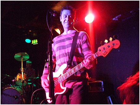 three geeky blokes handling guitar, bass, and drums, and the band's